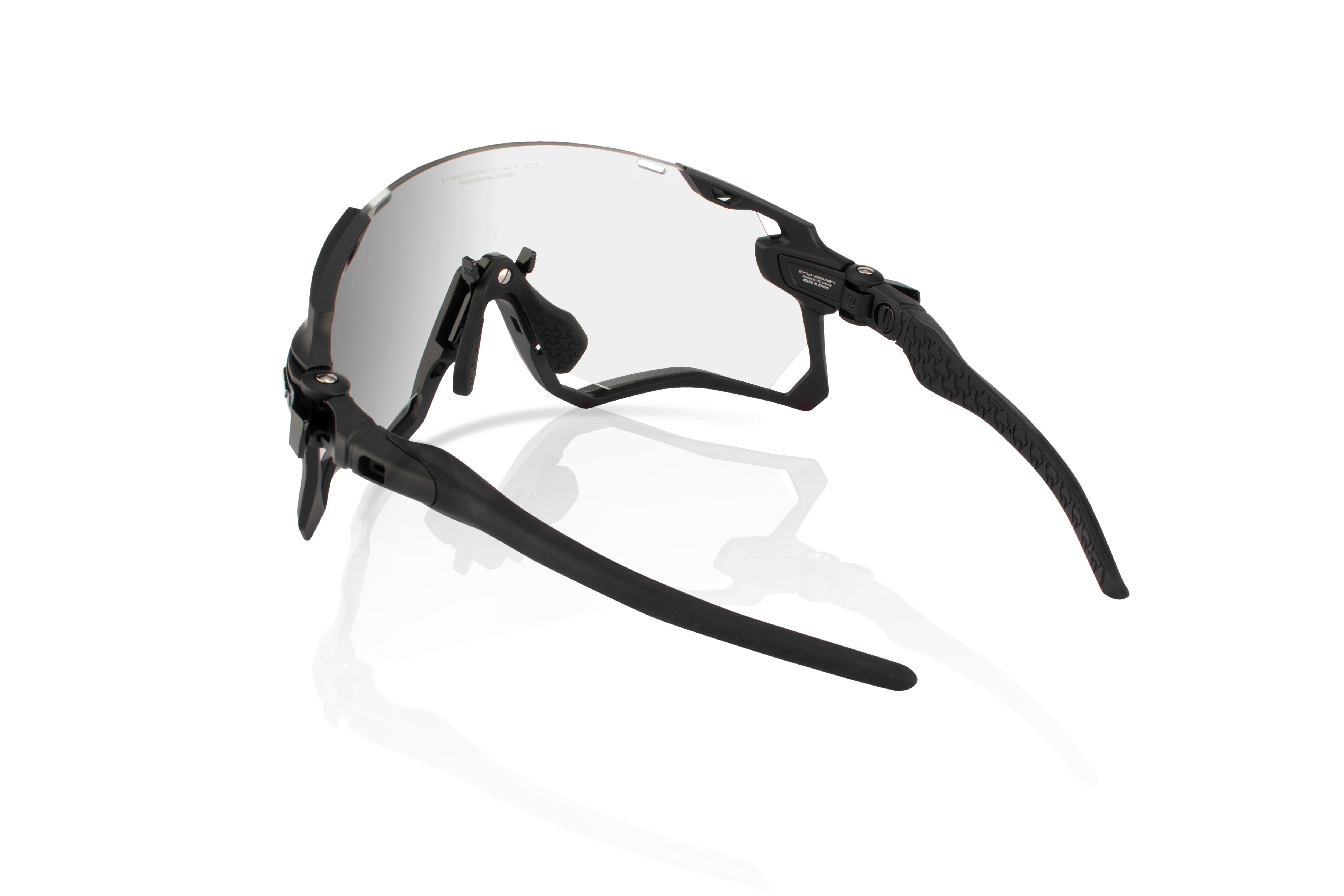 紫外線量によって自動的にレンズの濃度が変化する調光レンズ。トンネルや夜間など紫外線が少ないシーンではクリアに、野外など紫外線が多いシーンではスモークにレンズ色が変化します。