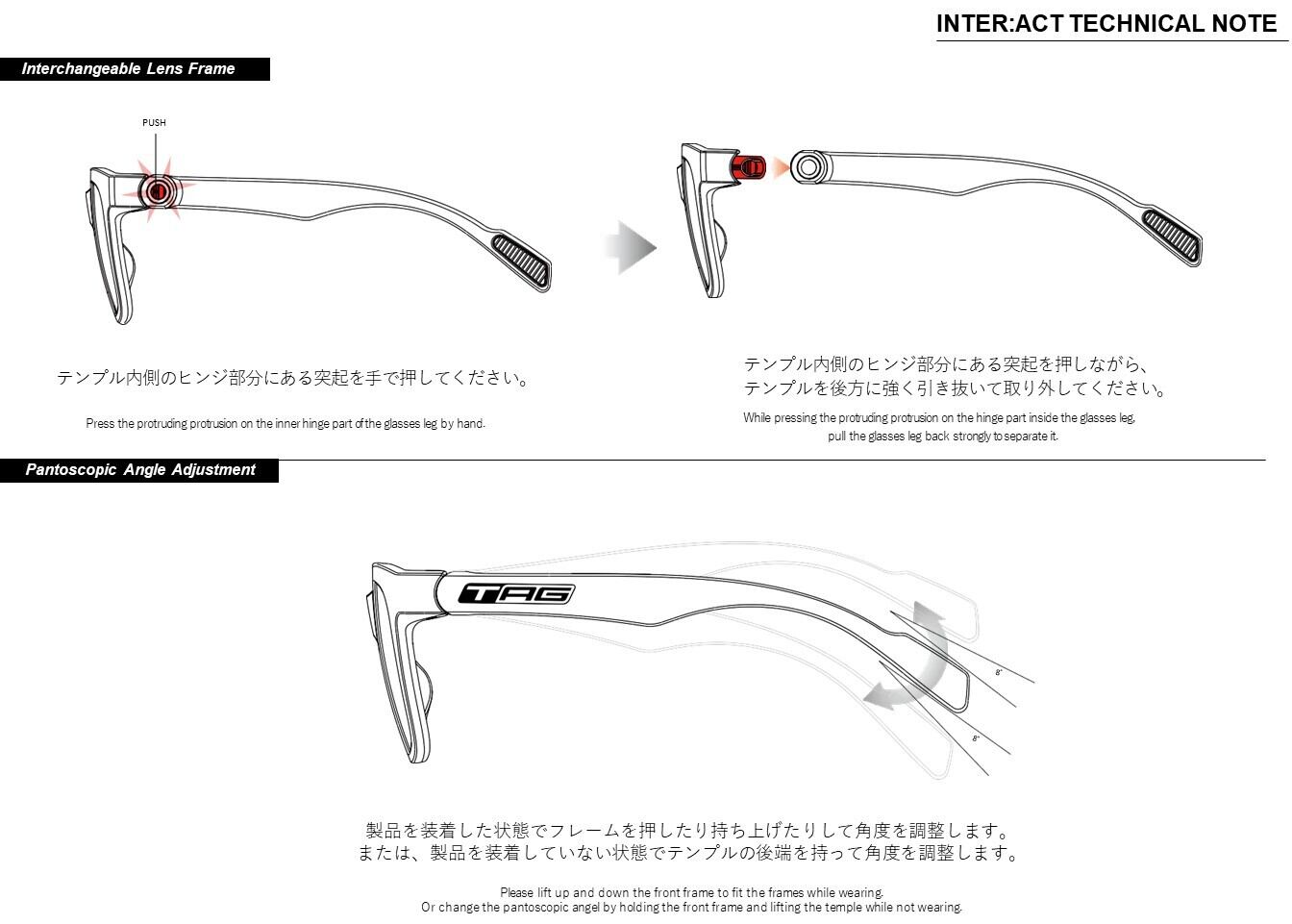 ・特許取得のPantoscopic Angle Adjustmentでテンプルが上下に可動。より快適なフィッティングを実現できます。またワンタッチでテンプルの付け替えが可能です。