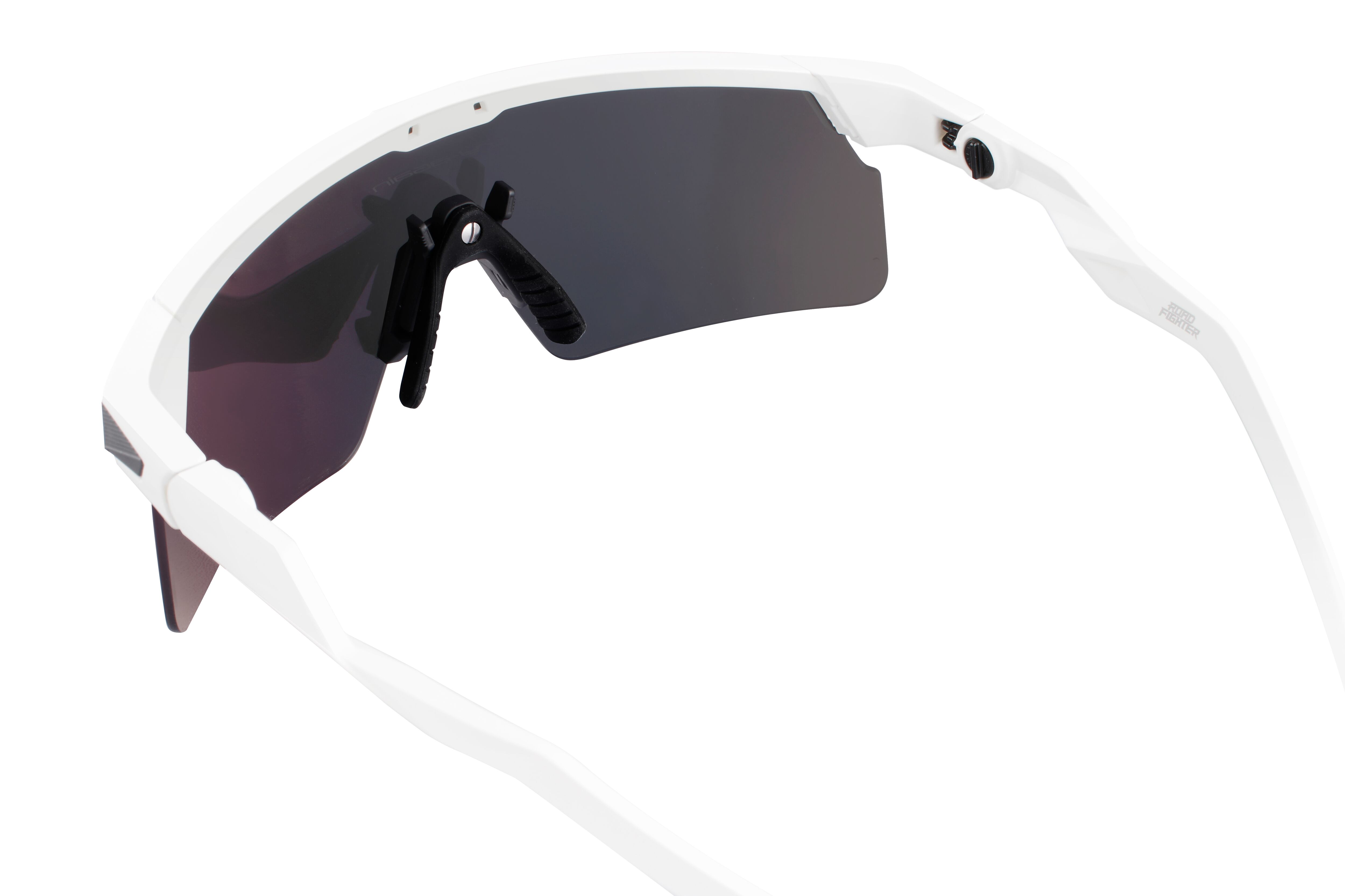フレームは超弾性樹脂のTR90。ROAD FIGHTERのTR90は軽量で弾性に優れた素材で、アスリートに快適なかけ心地を提供します。